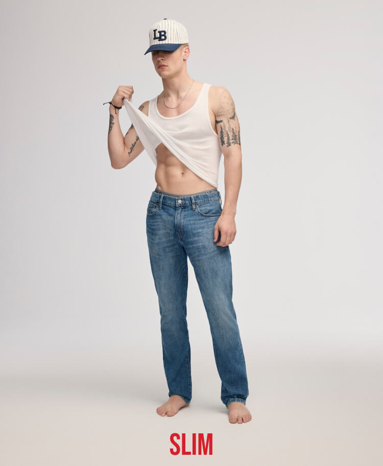 If you like a close fit, our slim fit jeans offer a modern, fitted contour shape through the hip and thigh while providing more room in the leg. Our 105 Slim Taper jeans have a narrower fit towards the bottom of the jean and our men’s skinny fit jeans offer the closest fit available, hugging tight from waist to ankle.